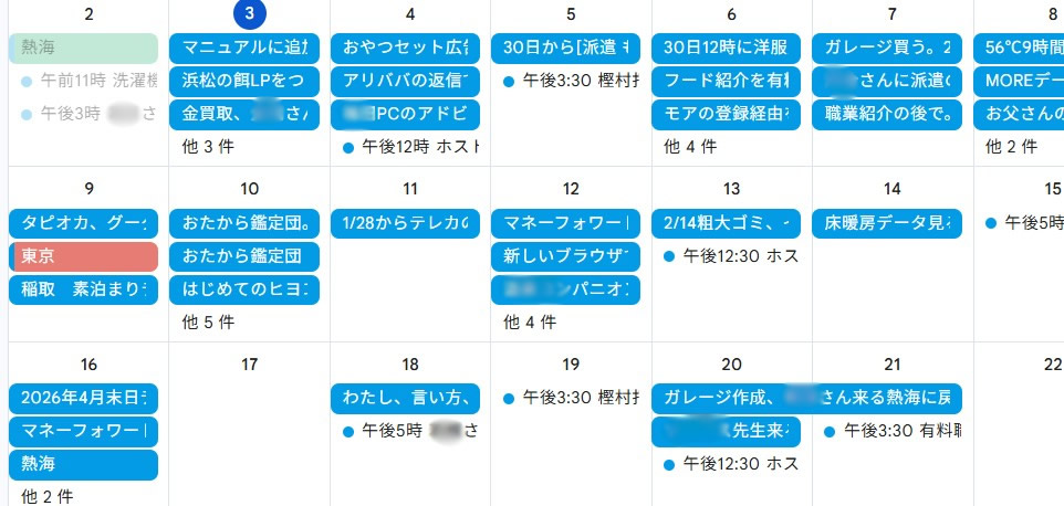 ・Googleカレンダー管理(毎朝今日の日程の確認)