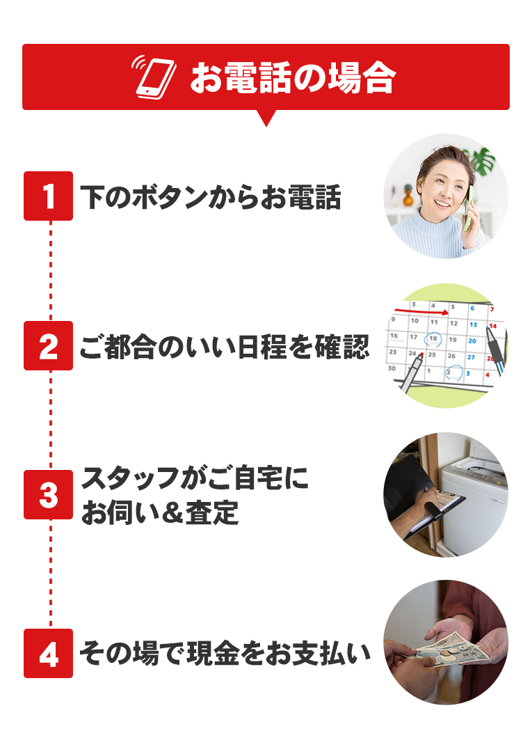 最初の電話で一番安心したのが「出張費・査定料・キャンセル料はすべて無料です」という説明でした。