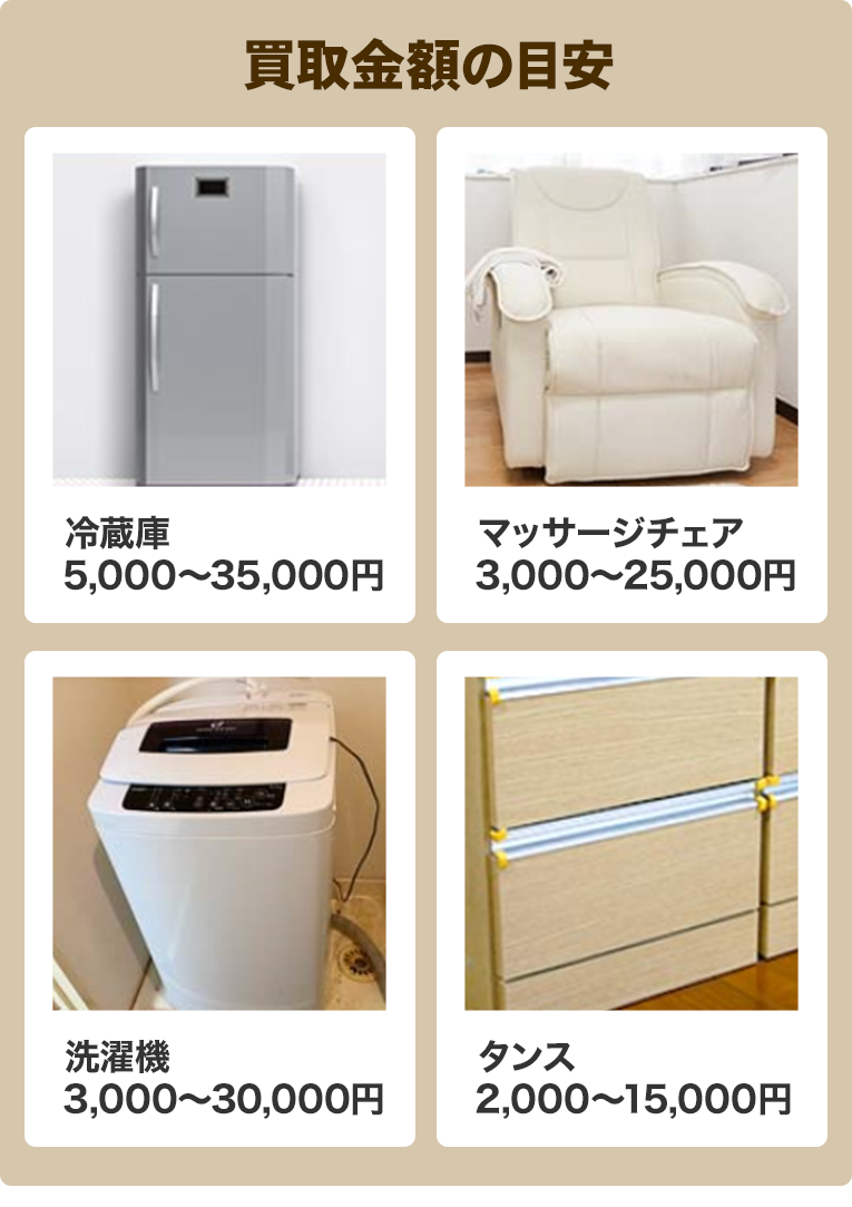 ・家具、家電、ブランド品、貴金属など何でも買取りが可能