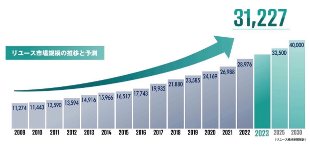 リユース業界の動向によると、「2023年、リユース市場規模は3兆円を超えており、市場の拡大は今後も続く見込みです。リユース経済新聞では、2030年にはリユース市場が4兆円のマーケットに拡大すると予測しています。」